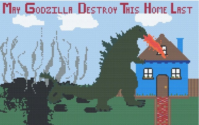 May Godzilla Destroy This Home Last Pdf Cross Stitch Pattern Etsy